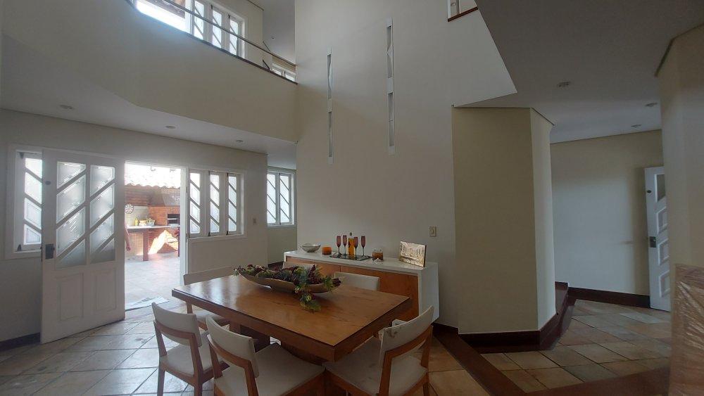 Sala de jantar espaçosa, arejada e bem iluminada.