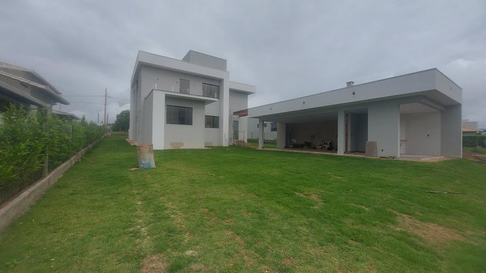 Na parte externa, uma ótima área gourmet completa com cozinha e churrasqueira, lavanderia, banheiro e amplo espaço gramado nos fundos e nas laterais da casa e ainda um quintal, possibilitando assim o plantio de pomar e hortaliças.
