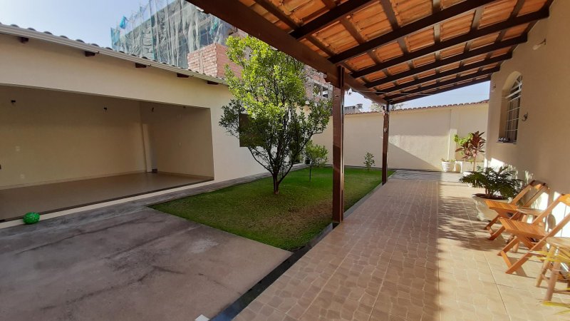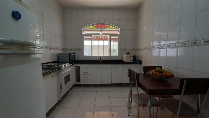 Casa com 02 quartos amplos sendo 01 com suíte; Quintal gramado com um pequeno pomar; Área Gourmet coberta com um salão e banheiro; Varanda coberta com telhado colonial; Área lateral super espaçosa com jardim; Área de serviço separada; Deposito de utensílios; Cozinha super espaçosa toda revestida, com armários planejados, bancadas em granito e pia em inox; Sala de jantar ampla e muito bem iluminada; Sala de estar para dois ambientes muito espaçosa e bem iluminada; Banheiro revestido em cerâmicas especiais; Garagem para 03 carros;