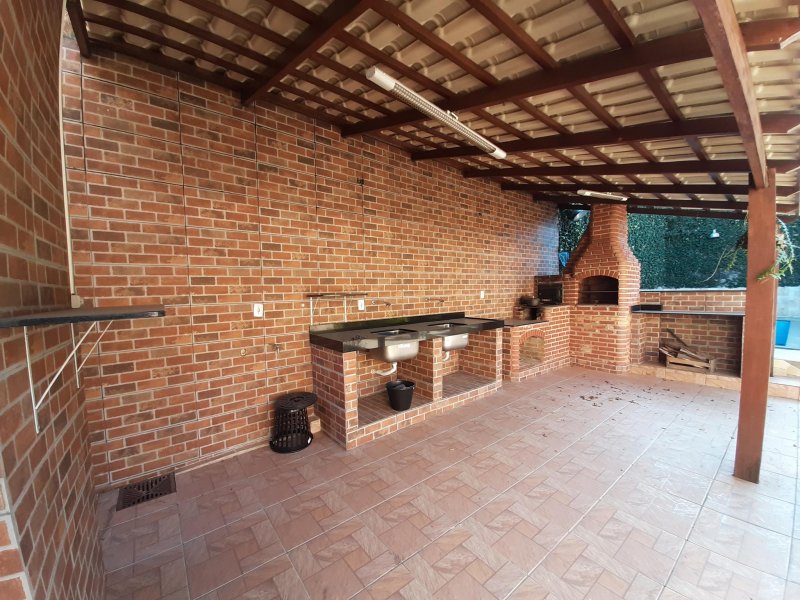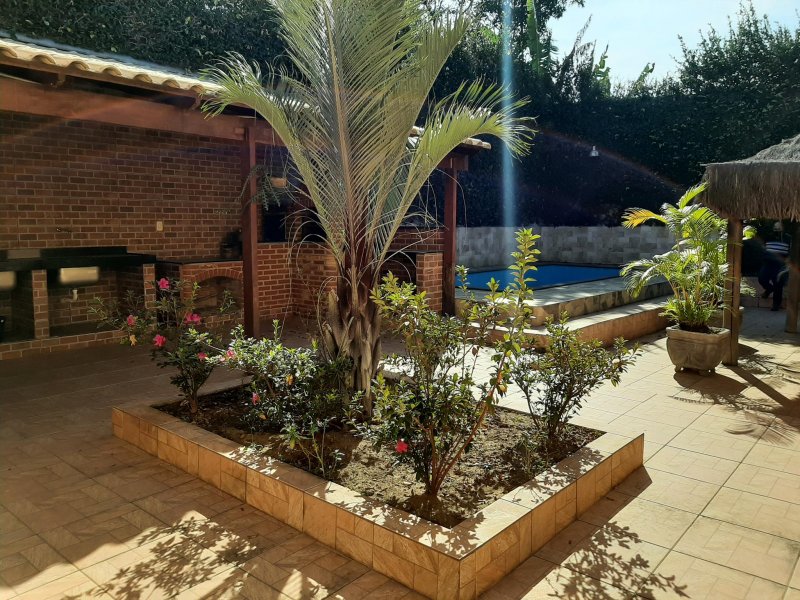 Área gourmet coberta com telhado colonial, churrasqueira, forno, fogão a lenha, pia com bancada em granito, piscina, banheiro separado, quiosque;