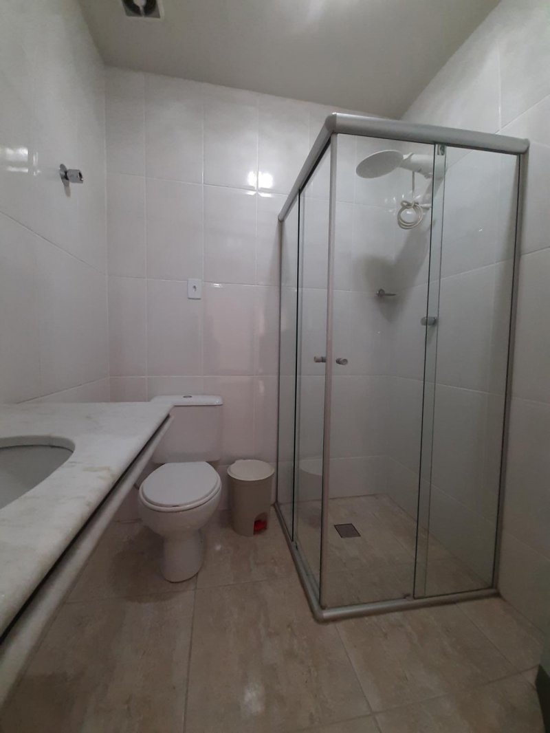 Banheiro social com bancada em granito e box blindex;