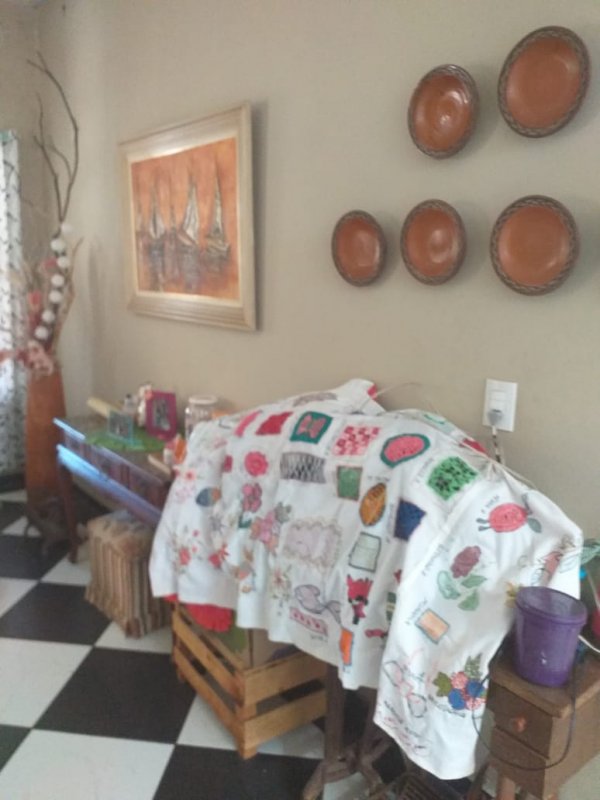 Casa 03 quartos sendo 01 com suíte com parede revestida, box blindex;
