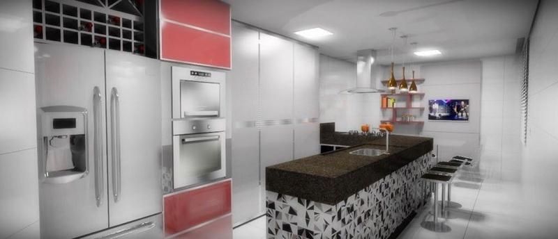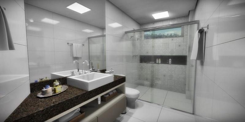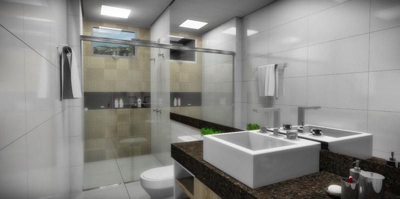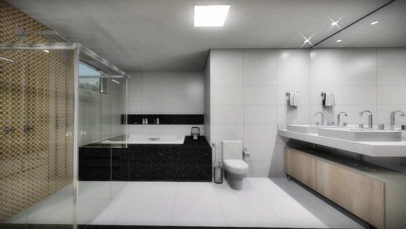 Acabamento finíssimo em porcelanato Porto Belo, granito nobre, cerâmicas especiais e pastilhas de vidro.